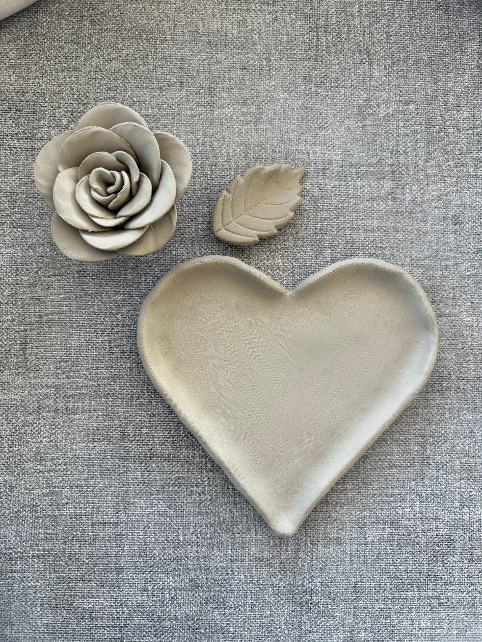 You'll enjoy a guided hand building pottery session, where you'll create a single red rose and heart shape trinket dish!!
